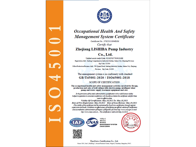 ISO145001:2018認(rèn)證證書(shū)(職業(yè)健康安全管理體系)