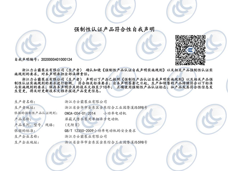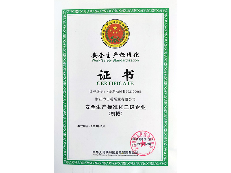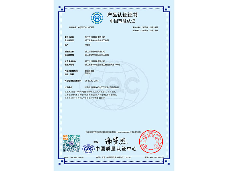 浙江力士霸泵業(yè)有限公司(浙江制造認(rèn)證正書(shū)證書(shū)編號(hào):CZJM2